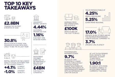 “Overall, the report signals that the Purpose Built Student Accommodation sector remains a robust, defensive asset class for investment, supported by strong demand and supply fundamentals.