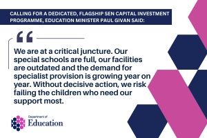 Northern Ireland Education Minister, Paul Givan, has called for a flagship Executive investment programme to transform educational facilities for children with Special Educational Needs (SEN).